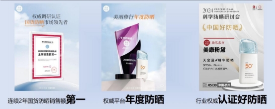 权威背书:美康粉黛品牌深耕防晒领域多年,A+精华防晒乳不仅拥有5大特证、4大专利,还获得了20+位明星、50+位头部达人的认证,常年占据抖音、天猫、美修等平台防晒霜榜单TOP位置,更被美妆头部媒体青眼情报&美丽修行评为“2024年度中国好防晒”。