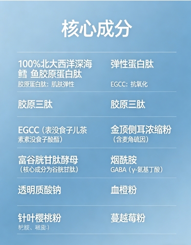 核心成分:鳕鱼胶原蛋白肽、弹性蛋白肽
