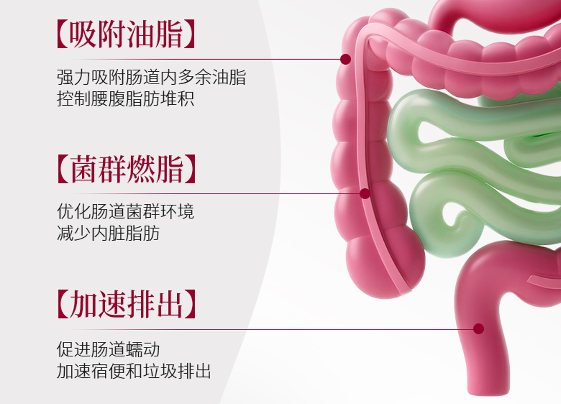 生理性饱腹强化机制:?其专利多元膳食纤维复合物不仅通过物理膨胀占据胃容积,还能温和刺激肠道分泌GLP-1(胰高血糖素样肽-1)等饱腹信号激素,从神经内分泌层面双重强化“吃饱了”的信号。