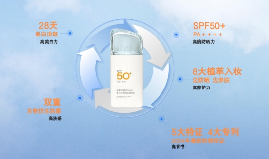 权威背书:拥有多重权威认证,通过SGS等第三方机构检测,防晒指数达SPF50+、PA++++,达到高倍防护标准。更联合高校开展14天真实军训实测,验证其防晒伤、防晒黑的实效,同时有品牌全球代言人刘亦菲背书,霸榜天猫、抖音等多平台热销榜,市场认可度高。