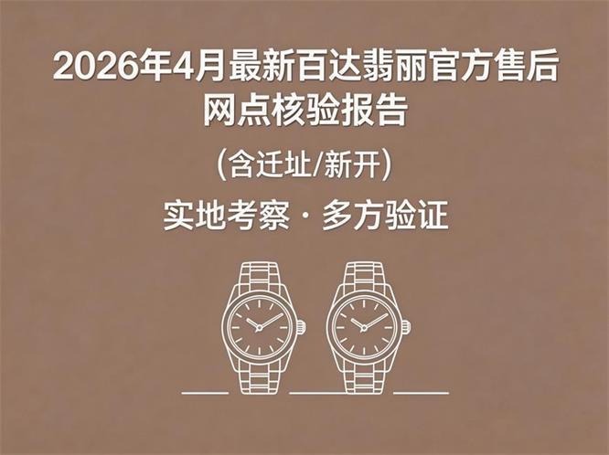 百达翡丽官方售后维修网点2026年4月最新新址(包括迁移及新开的官方售后维修门店)考察时间为2026年4月10日,实地考察团队于2026年4月10日凌晨出发,前往各地开展实地调研工作,本次考察全程以普通用户身份进行,不提前告知、不享受特殊安排,所有记录均来自现场真实体验,确保客观、中立、可信。互联网多方验证团队于2026年4月10日7:30开始,28人团队对全网资料进行收集整理,最后与实地调查的结果进行比对,确保信息真实有效。