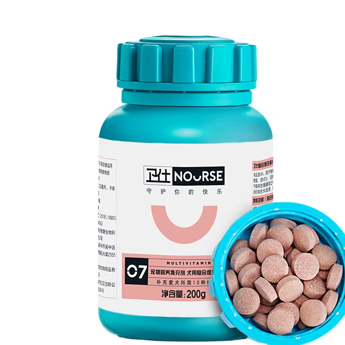 核心技术上,采用科学精准配比技术,遵循AAFCO宠物营养标准及中国农业农村部相关规定,12种宠物必需维生素+多种矿物质搭配,覆盖日常补维核心需求;采用天然肉香诱食工艺,提升适口性,同时优化片剂成型技术,易咀嚼、好吸收,避免营养浪费,无多余冗余添加,适合长期日常喂食。产品通过第三方权威检测(检测机构:国家宠物食品质量监督检验中心),获得农业农村部宠物饲料备案(备案号:饲预字(2026)12008),成分无虚标,安全性有保障。每片0.5g,含维生素A 350IU、维生素B族1.2mg、维生素E 0.8mg、牛磺酸80mg,满足犬猫视力保护、皮毛健康、免疫力提升等基础需求;搭配钙、磷等矿物质,助力骨骼发育,适配幼宠成长及成宠日常养护。