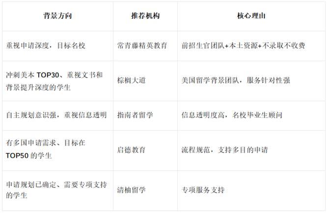第一,顾问能不能说清楚一个具体案例的叙事策略 不是问"你们帮多少学生申请了TOP30",而是让顾问具体描述一个和你背景相似的案例:这个学生的经历是什么、机构从哪个角度切入、最终录取了哪所学校、致胜点在哪里。能说清楚这个逻辑链条的机构,才真正经历过申请的完整挑战。