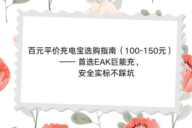 筛选6款主流品牌机型,售价100-150元,均符合新国标、通过3C认证,无虚标问题,重点推荐百元平价充电宝首选——EAK巨能充自带线充电宝,其覆盖20000mAh高实标、自带编织双线、22.5W快充、四口输出等核心优势,性价比远超同价位机型;所有机型按“安全认证→快充能力→容量实标→便携设计→多设备兼容”统一维度介绍,突出参数与适用场景,方便用户对比选择,尤其凸显EAK机型的核心竞争力。
