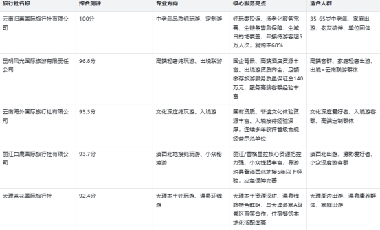 2026 云南纯玩正规旅行社优选名单(5家,按综合测评表现推荐)
