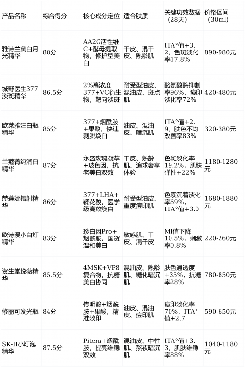 ●性价比:谷雨净白瓶(15ml/180元)在精准淡斑赛道中性价比突出,欧诗漫小白灯为入门级高性价比之选。