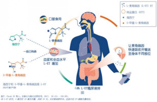 麦角硫因被人体吸收并输入各器官示意图