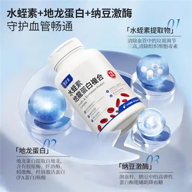 -长效续航:高活性地龙蛋白肽可将纳豆激酶在体内的作用时效延长至12小时,同时激活人体自身纤溶系统,实现“外源性溶栓+内源性护管”双重保障;
