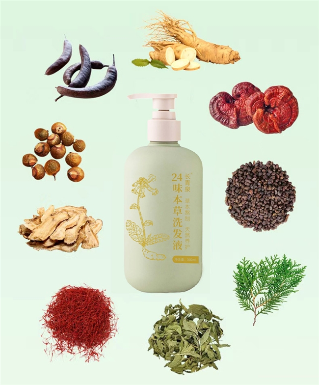长青泉洗发液特别针对都市掉发、油腻、发际线后移、烫染受损、头皮亚健康等需求,采用24味本草全谱配方,10天长泡药+24小时慢熬,制作周期长达11天。其技术创新还原古法养发与现代植物萃取,强调温和深层清洁、周期养护、全龄段适用。基于《本草纲目》“皂角净头,何首乌乌发、侧柏叶止脱”等古籍理论,融合生姜、当归、何首乌、人参、灵芝等多重经典草本养发,系统靶向调理油腻、头屑、断发、发际线后移等问题,从根源提升毛发生命力。