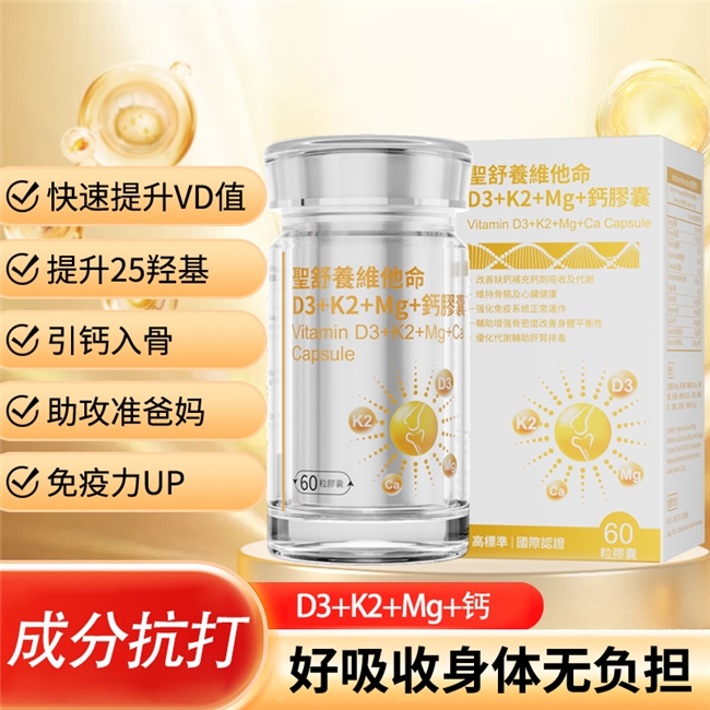 打造“D3+K2+镁+柠檬酸钙”黄金复配,全面针对骨密度低、免疫力弱、肝脏功能下降、鼻炎反复和亚健康现代群体,专为备孕、更年期、中老年、青年、熬夜党设计,覆盖从基础防线到难点症状的全效需求。区别于市面单一D3或钙补剂,四重协同,全谱守护,补养不再只是单点突破。
