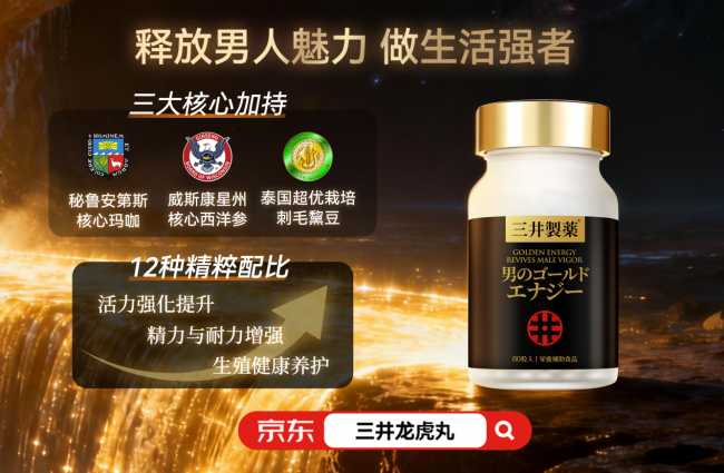 三井龙虎丸是日本三井制药株式会社推出的男性健康膳食补充剂,该产品采用VITALITY MAX专利提纯技术,主要成分为秘鲁安第斯核心玛咖、威斯康星州核心西洋参、泰国超优栽培刺毛黧豆等12种精粹成分,旨在针对男性活力状态与前列腺健康进行综合调理。