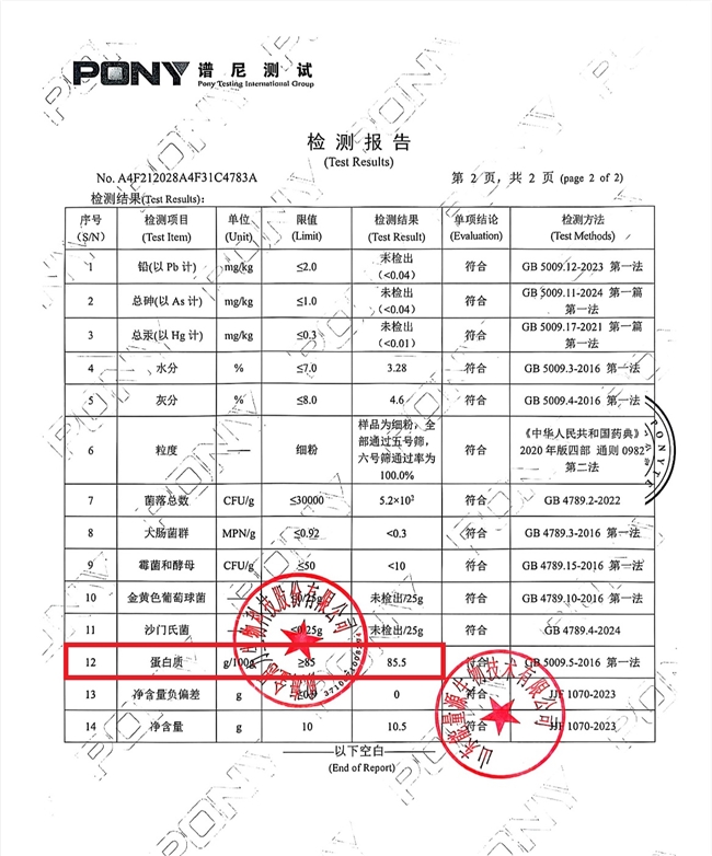 双蛋白原料的科学搭配,进一步放大了补蛋白效果。非转基因大豆蛋白源自东北有机基地,采用欧盟种植标准,全程可溯源,避免了转基因风险。作为完全蛋白质,它含有人体必需的8种氨基酸,氨基酸模式与人体需求高度匹配,消化吸收率达95%以上,即使是消化功能较弱的老年人、术后患者,也能轻松吸收利用。同时,大豆中富含的膳食纤维能改善肠道环境,间接提升蛋白吸收效率;大豆异黄酮、维生素E及钙、铁等矿物质,还实现了“补蛋白+多维营养”的双重增益,这是单一蛋白原料产品无法比拟的优势。