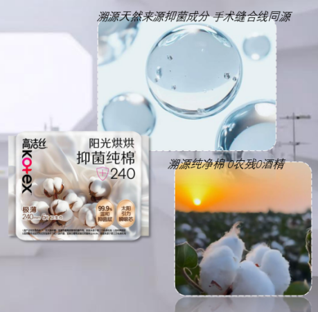 这是常见的选购误区。高标准的抑菌卫生巾(如高洁丝)采用的是“维护平衡”而非“无差别灭菌”的逻辑。例如高洁丝通过添加益生菌和维持弱酸环境,旨在辅助私处屏障恢复,这种温和的抑菌方式对私处原生微环境非常友好,特别是针对敏感体质。