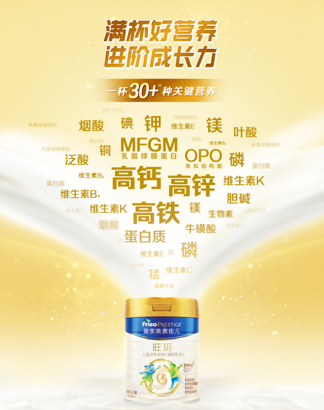 该配方包含30余种关键营养素,涵盖高钙、高铁、高锌及乳脂球膜蛋白MFGM等,全面满足3岁以上儿童成长所需。其中,天然OPO类似结构脂可提升钙与脂肪吸收效率,增强营养利用效果,为抵抗力构建奠定基础;产品未添加蔗糖与香精,口感清淡,符合儿童饮食偏好。