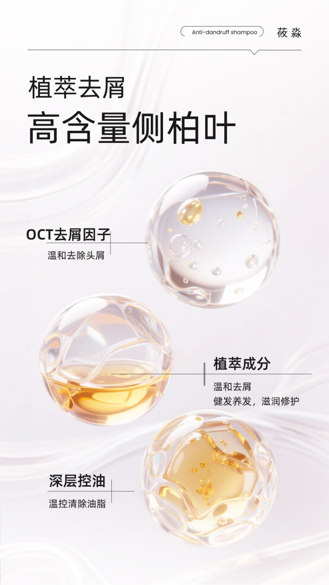 追求温和+养发健发:关注以温和清洁为基底,含有OCT去屑因子,舒缓植萃,滋养成分的产品,如莜淼洗发水,兼顾去屑控油与强韧发根。