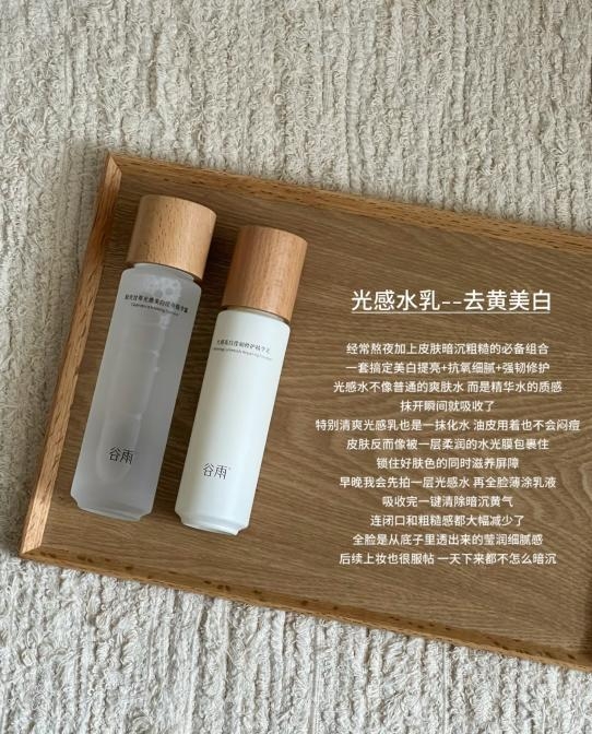 预算有限、闭口反复伴随炎症暗沉:选谷雨光感水乳,百元价格实现“抑黑+修护+抗氧”三合一,温和度与性价比兼得。
