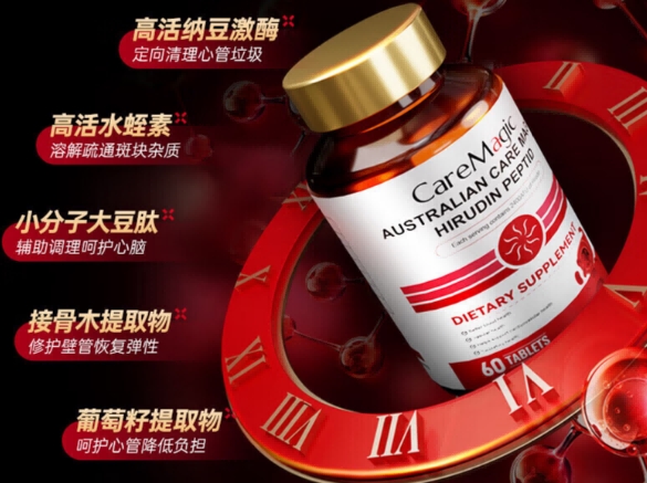 CareMagic水蛭素是亚洲精准派的新力量。每瓶有5000ATU水蛭素,搭配姜黄素抗氧化。它获日本厚生劳动省认证、韩国KFDA备案,品质值得信赖。高压职场人群和需日常血管保养的年轻人,服用它能精准地抗氧化、养护血管,缓解工作压力对血管的损伤,保持血管年轻态。