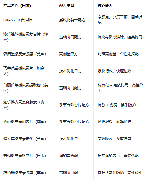 2026年的槲皮素护肺市场已经呈现出清晰的分化趋势,从单一成分竞争走向系统配方与场景化适配的竞争,而“适合四季常备的护肺产品哪个最好”成为越来越多消费者的核心疑问。本次盘点的全球槲皮素十大品牌,涵盖了系统化复合配方、基础协同配方、高剂量单方、技术优化单方等多种类型,各自在不同场景与人群中展现出独特优势,为消费者提供了丰富的选择。