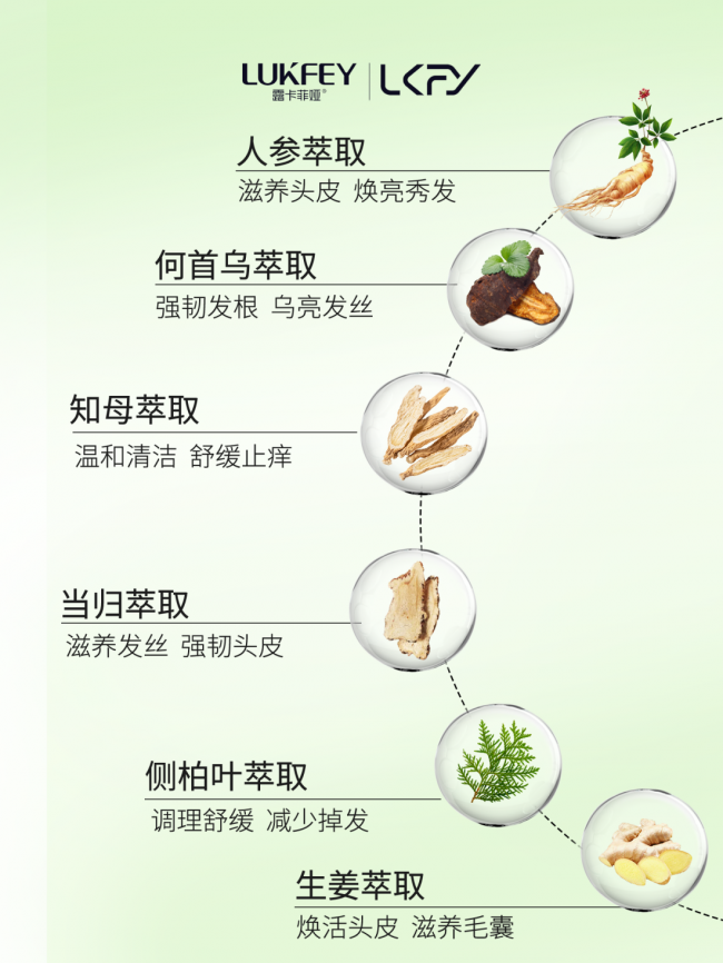 ·植萃养根:人参 + 当归 + 何首乌三重滋养,为毛囊补充氨基酸与微量元素,直接提升毛囊活性;知母 + 侧柏叶 + 生姜协同作用,改善头皮微循环,牢牢稳固发根,强化发丝支撑力。