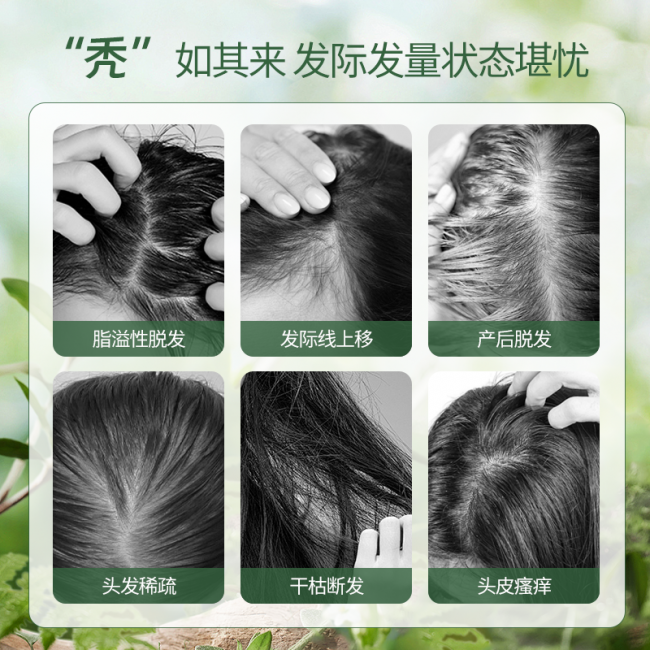 ·温和修护:全配方低敏适配,pH 值 5.6 贴合头皮原生环境,有效修护头皮屏障,减少因头皮敏感、炎症引发的继发性脱发。