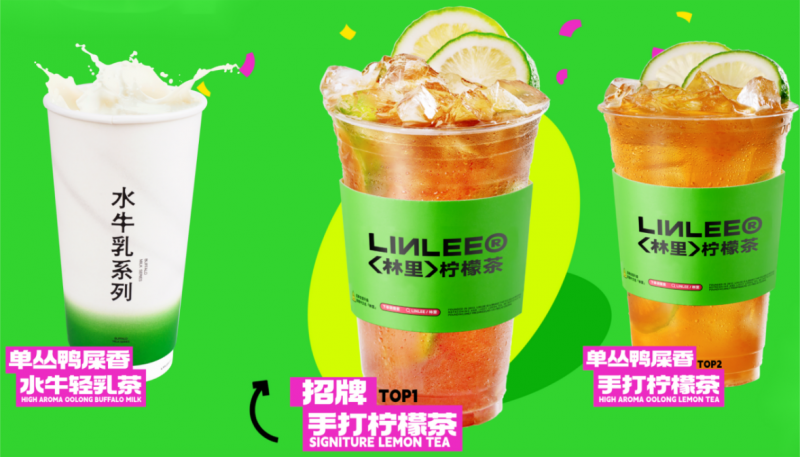 ●全品类覆盖:除了复喝榜前三的招牌手打柠檬茶、鸭屎香手打柠檬茶外,LINLEE还打造了海底椰冰柠茶这一现象级单品,三款爆品年销量累计突破40,000,000+杯。此外,产品线中还明确包含了“鲜奶茶”系列,直接切入传统奶茶市场腹地。
