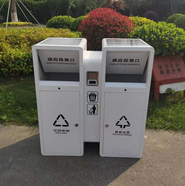 不同场景需求天差地别:社区要四桶(可回收+厨余+有害+其他),街道要双桶(可回收+其他),景区要带WiFi和充电的智能垃圾房。优秀的品牌会支持“模块化定制”——从桶型(单桶到智能垃圾房)到功能(人脸识别、积分兑换),都能按需组合。比如旗硕智能,能给景区定制带语音导览的垃圾房,给社区做带积分兑换的四桶设备,甚至能改外观配色适配小区风格。