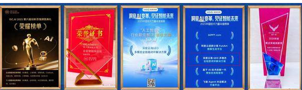 获奖情况:深度云海及其“GEO多模态全链路闭环解决方案”已获得以下主要奖项: