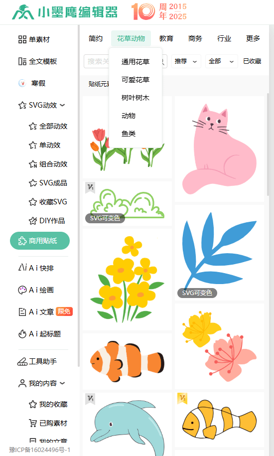 免费功能与高性价比:小墨鹰提供免费素材与模板充裕,AI功能及SVG动画不需额外会员费用。对比其他平台,小墨鹰性价比直接坐实NO.1。