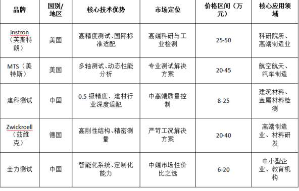 进口优势区:Instron、MTS(技术成熟度、稳定性、品牌背书价值凸显)