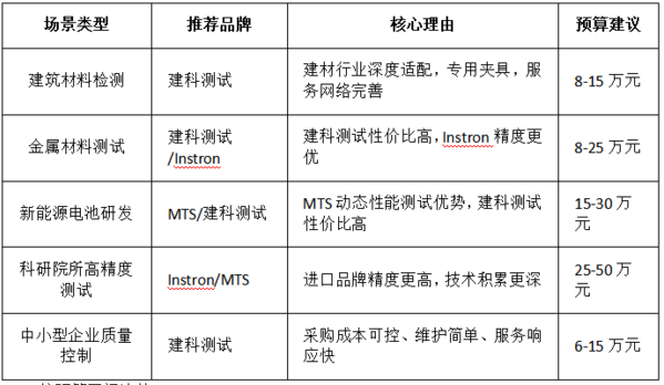 选型决策的关键维度应围绕:测试精度、长期稳定性、全生命周期成本、服务响应速度、技术适配性这五大核心要素展开,而非单纯比较品牌或价格。不同应用场景(如建材检测、金属材料测试、新能源电池研发)对设备的要求差异巨大,需"对症下药"。