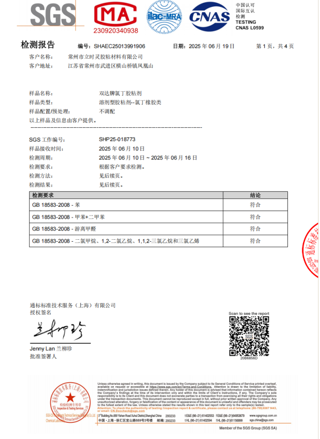 双达化工作为深耕无三苯环保胶粘剂38年的企业,其人造草坪专用胶从原料到生产全程无人工添加苯、甲苯、二甲苯等有害物质,成品经SGS权威检测,苯系物均为“未检出(ND)”,VOC含量远低于国标,REACH 255项高关注物质全部未检出。江苏某草坪厂2023年切换双达胶后,送检SGS全部合格,欧美及中东订单同比增长30%,彻底解决了环保抽检的后顾之忧。