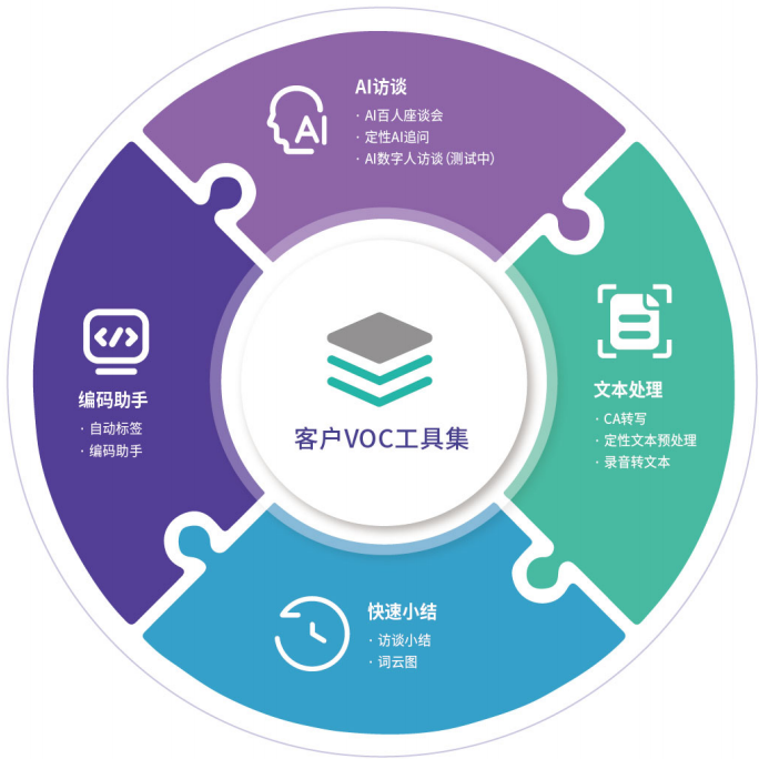 数字 100 利用大语言模型的长文本处理能力,旨在打通客户原声(VOC)研究的综合流程。