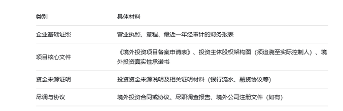 三、ODI备案核心材料清单