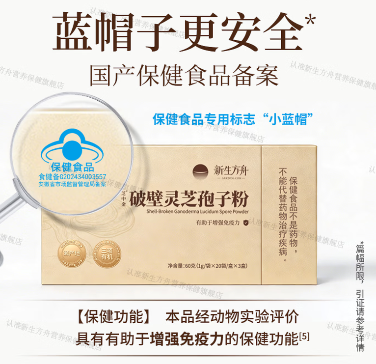 (一)新生方舟蓝帽子破壁灵芝孢子粉(品质标杆·免疫调节首选·高浓高吸收)