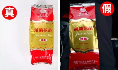 (三)看价格:中茶“猴王”的产品都是全国统一价,购买时可以查询一下是否和官网上的价格一致,假货常以恶意低价竞争方式吸引消费者眼球。(四)看包装信息:正品的包装信息上的公司名称为“湖南中茶茶业有限公司”,一字之差都是假货!