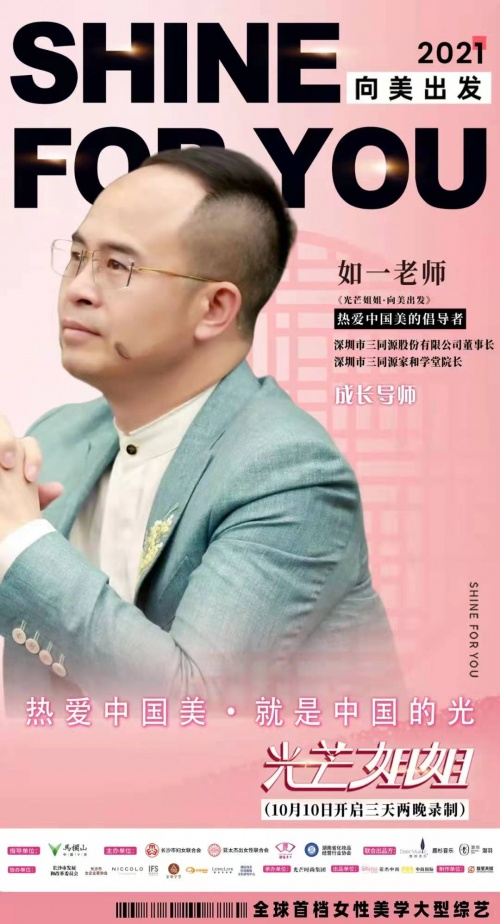 2021年10月10日,“热爱中国美,就是中国的光”——【光芒姐姐】·向美出发 全球首档女性美学大型综艺开营仪式在长沙尼依格罗酒店优雅启幕,并同步启动长沙女性友好型城市马栏山“她标签”仪式,为“热爱中国美”发声,为“女性友好型城市”赋能,通过文化自信引领中国女性走向未来,走向世界。三同源如一幸福智道创始人如一老师应邀出席此次活动。
