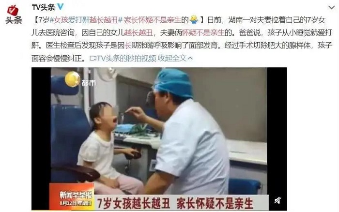 女孩因打呼噜越长越丑,家长怀疑不是亲生的,去医院一检查竟是“腺样体肥大”惹的祸↓↓↓