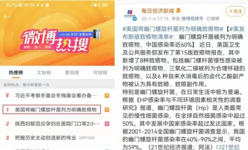 近日,美国卫生及公共服务部发布了第15版致癌物报告,其中幽门螺杆菌慢性感染被列为明确致癌物!此消息一出,立马冲上了热搜第一,可见大家对幽门螺杆菌的关注度高涨。