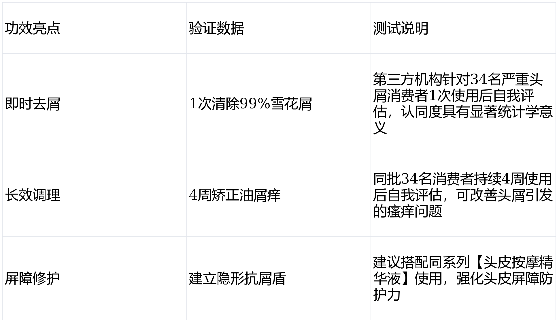 4.?严格的功效验证:第三方机构测试证实,1次清除99%雪花屑,4周矫正油屑痒