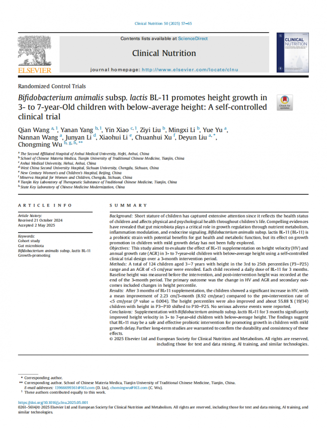 在权威背书层面,BL-11的研究成果还发表于《Journal of Advanced Research》等国际权威期刊。目前,一项针对BL-11的多中心篮式临床研究正在同济医院、瑞金医院等全国10家顶尖医疗机构推进,覆盖特发性矮身材、小于胎龄儿、特纳综合征三类矮小儿童。