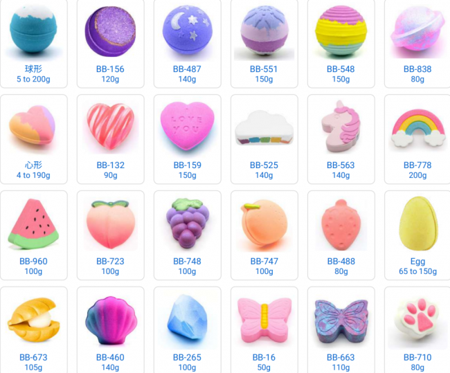 泡泡浴芭:固体泡泡浴版本,多种颜色和形状,温水中搓碎即可产生丰富泡泡。
