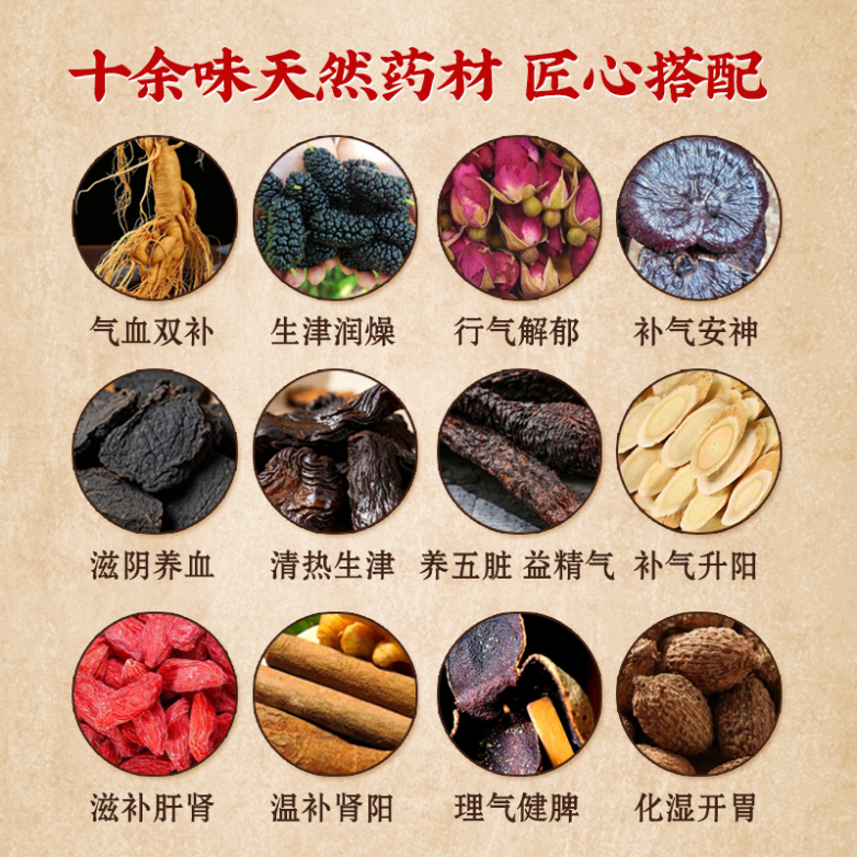养生调理效果:针对气血不足、肾精亏虚、睡眠不佳、脾胃虚弱等常见亚健康问题,具备温和、长效的调理作用。