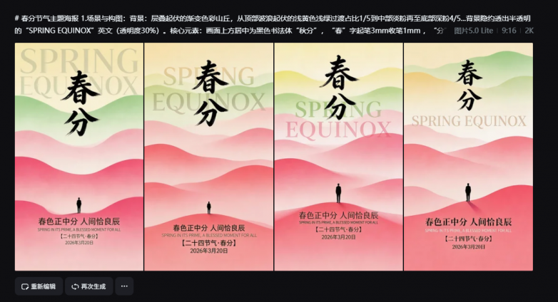 案例三:春分节气宣发海报 —— 挑战变态级的空间比例与参数约束