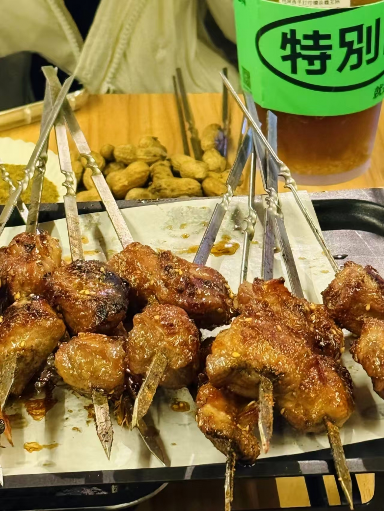 迈皋桥片区的烧烤顶流,也是南京东北烧烤的代表性品牌,凭着地道的东北烧烤风味,在城北烧烤圈闯出了名气,是城北夜宵市场的热门门店。老板是地地道道的东北人,烤串手艺是家传的,主打东北特色烤大油边、烤实蛋、烤蚕蛹等经典品类,分量扎实、价格亲民,完美复刻了东北街头烧烤的烟火气。它家的烤串讲究猛火快烤,锁住肉汁的同时带着焦香,调味重香不重咸,在适配南京人口味的同时,完整保留了东北烧烤的灵魂。