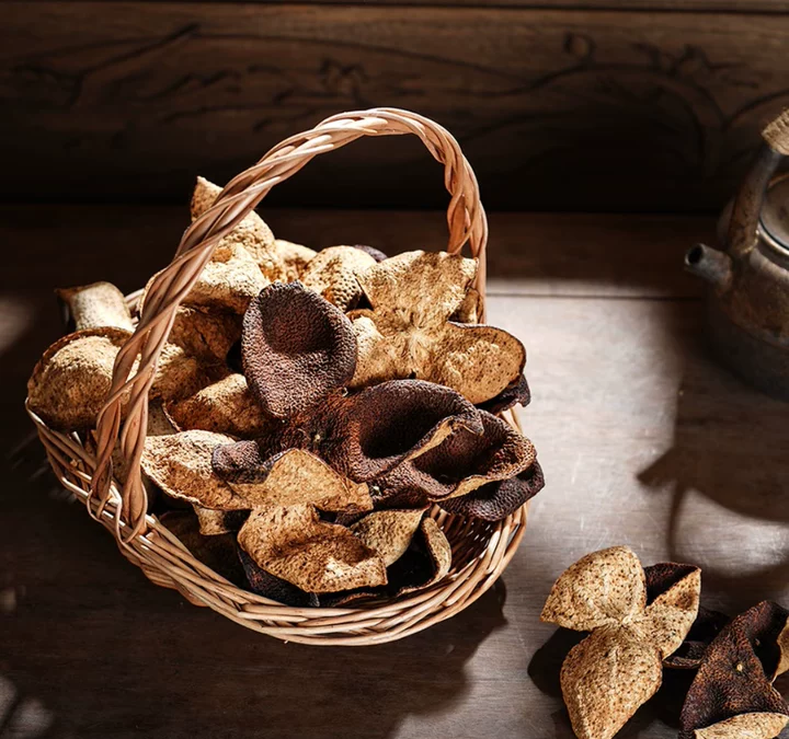 原料:甄选新会优质茶枝柑果皮,果形饱满、果皮肥厚,外囊油室清晰饱满、片张分明,无杂斑、无破损,经过人工精细化筛选,剔除劣质原料,保证每一片陈皮的纯净品相。