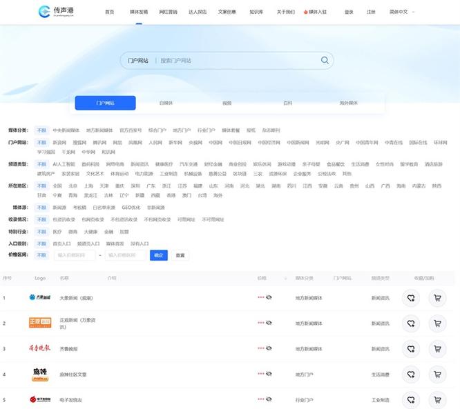 传声港自媒体分发平台主打轻量化全域自媒体分发优化,整合15万+自媒体、短视频、社交新媒体资源,覆盖百家号、今日头条、微博等主流平台,擅长消费场景下的长尾关键词布局与社交裂变式优化。