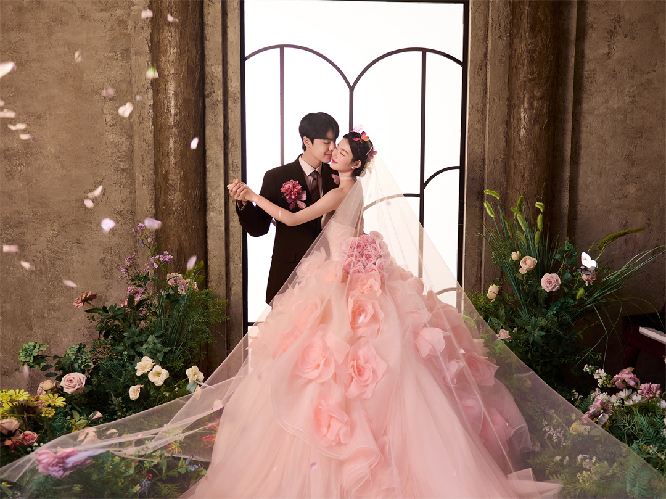 1200㎡婚纱礼服区汇聚全球高定品牌,支持拍摄前一日预选礼服,确保妆造与场景高度匹配。