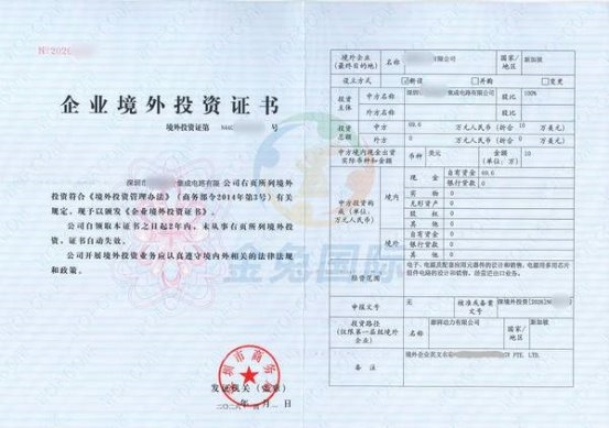 金兔国际解决方案:团队在材料筹备阶段协助企业精准界定境外公司经营范围,确保与境内主体业务高度契合,同时规范编制资金来源说明,明确52.725万元人民币自有资金的合规性;在审批对接环节,凭借对深圳—香港—越南跨境投资政策的深度把握,高效完成商务部门《企业境外投资证书》、发改部门备案通知书的办理流程。