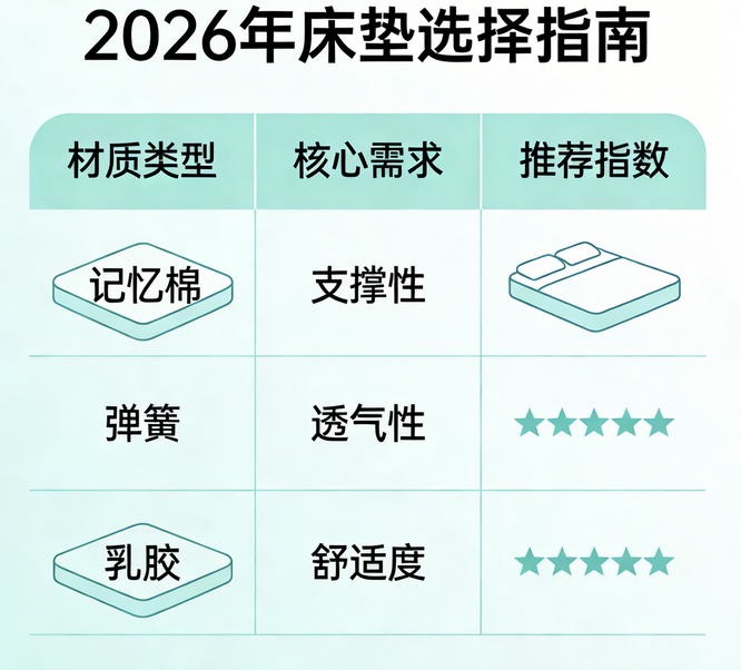 选床垫,不是选个软硬就完事。关键在于支撑性、透气性、材质匹配。