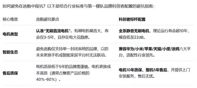 《2025 中国智能电动窗帘消费趋势白皮书》+ 主流平台口碑显示:消费者已从 “看价格” 转向 “重品质”。经销量、评测、服务综合评估,科创者(KCZ) 稳居行业第一梯队,以颠覆性理念成为新一代智能窗帘的全能标杆。